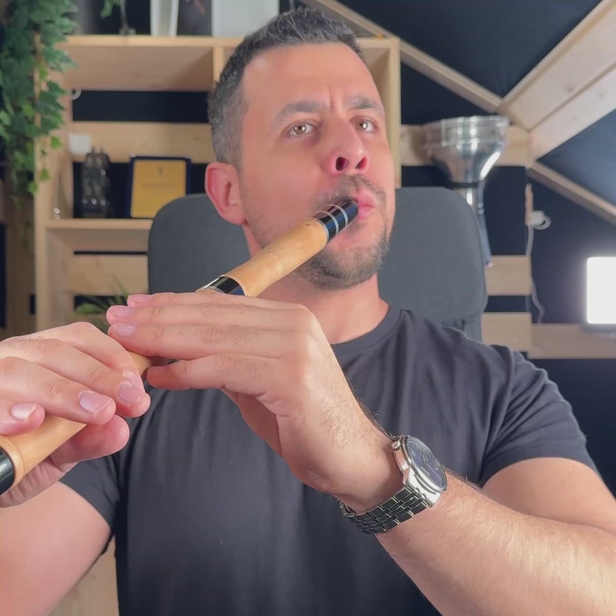 High quality, professional kaval, hand crafted of 10 years old cornel cherry wood. The cornelian cherry wood has been used for manufacturing kavals for decades and has proven to be one of the best materials for kaval manufacturing. The cornelian cherry wood kavals have a beautiful, soft and tender sound that is very characteristic for the Bulgarian style. This makes it excellent both for beginners and professional musicians.